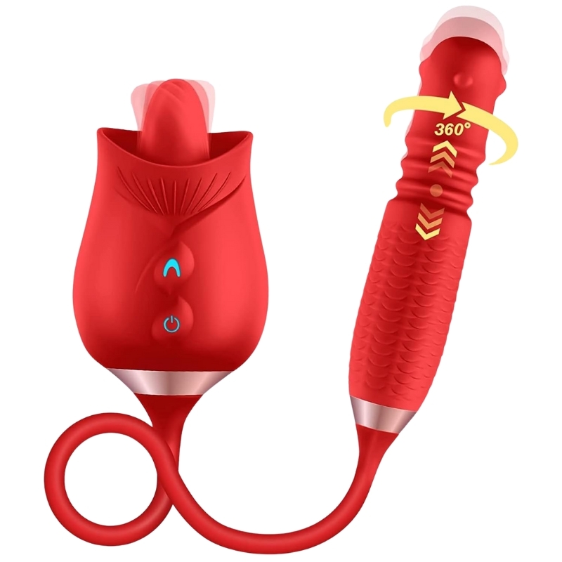 Su diseño inspirado en la delicadeza de una rosa esconde una potencia inigualable: la parte superior cuenta con lengua vibrante para estimular clítoris y pezones, mientras que el consolador integrado rota y empuja en múltiples intensidades, imitando los movimientos naturales para una experiencia profunda y realista.